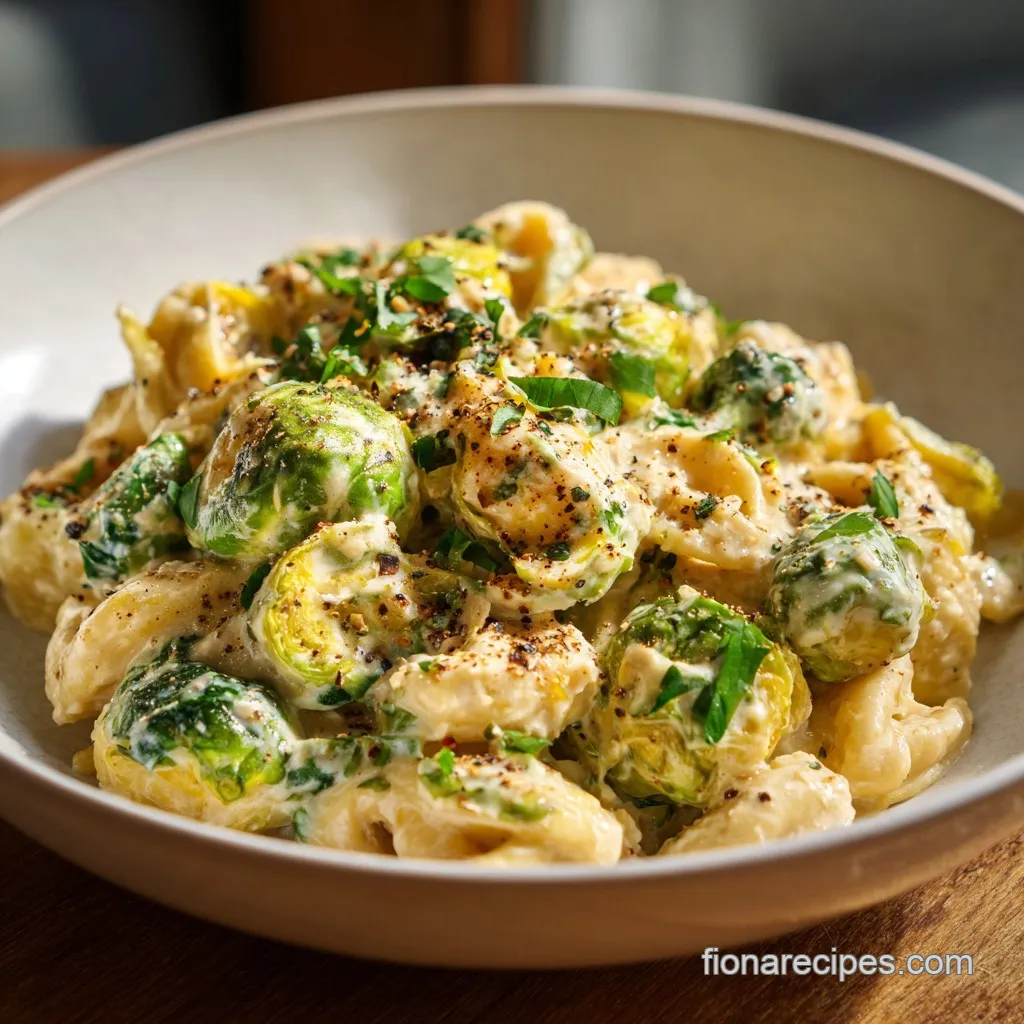 Creamy sauces like this Alfredo base work best. The fat from the heavy whipping cream and butter coats the sprouts, softening their texture while highlighting the deep, charred flavor developed during the initial sear.